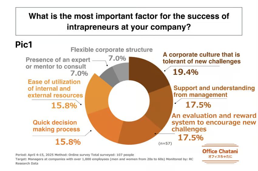 Office Chatani, Inc. (CEO: Masayuki Chatani) has announced the results of a survey they conducted on “intrapreneurs” in large companies, targeting those with over 1,000 employees. These results shed light on the actual state of business creation personnel in these companies.