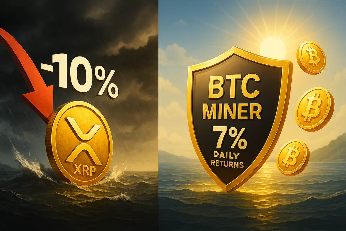 In the past 24 hours, XRP plunged 10%, sliding to approximately $3.18 amid a sudden market sell‑off (CoinCentral). At the same time, Bitcoin soared past $119,000 before pulling back 3%, Ethereum dipped 1.85%, and Solana fell 6.34%, underscoring the brutal volatility gripping crypto markets (AInvest, The Economic Times, aimsfx.com). Amid these wild swings, cloud‑mining innovator BTC Miner is carving out a “safe harbor” for investors, offering fixed, guaranteed daily returns of up to 7%, completely insulated from price fluctuations.