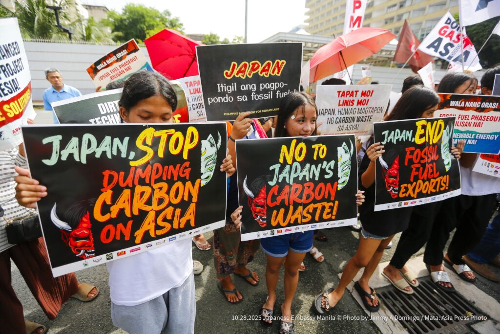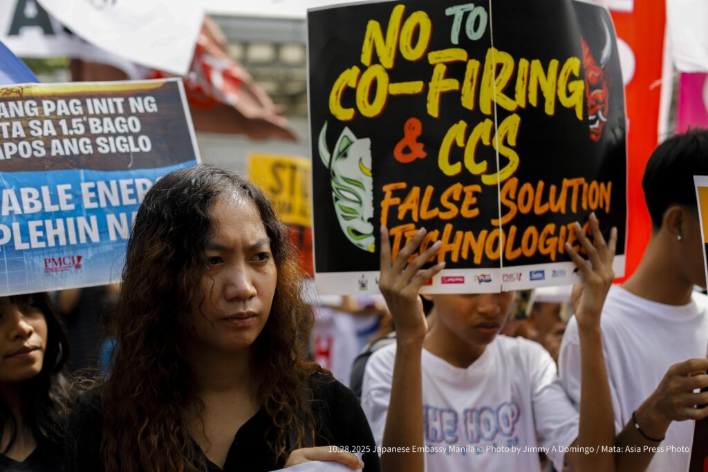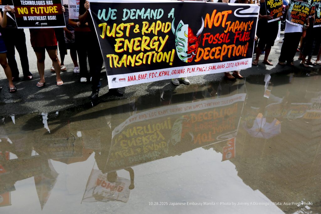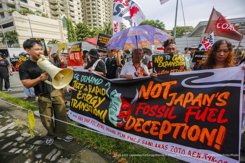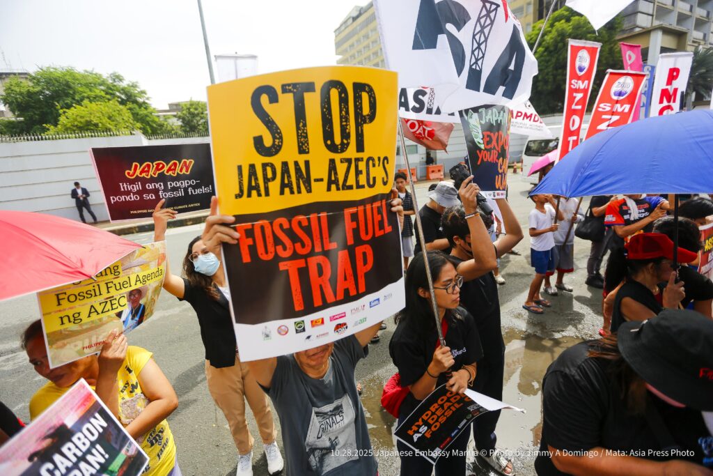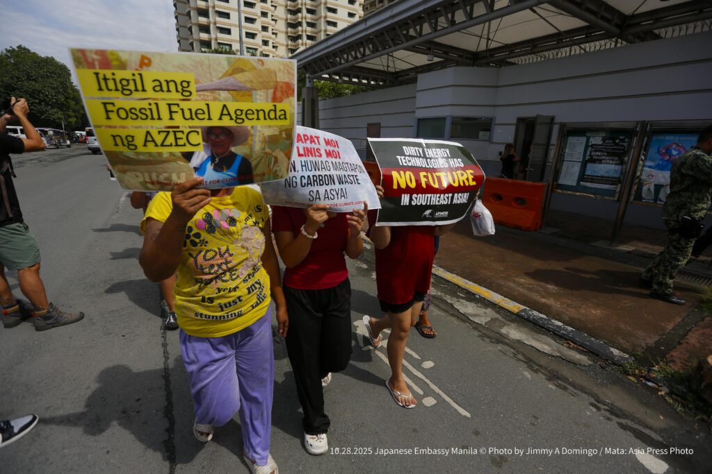 During a protest action on Oct. 28 in front of Japanese Embassy in Manila, the groups argued that Japan’s leadership of the Asia Zero Emission Community alliance promotes fossil fuel dependence rather than genuine decarbonization, citing support for liquefied natural gas, ammonia co-firing, and carbon capture and storage technologies.